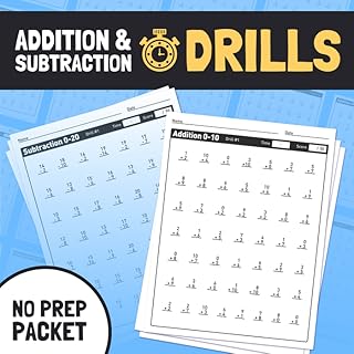Addition & Subtraction Timed Drills: No Prep Printable Worksheets These math worksheets contain everything you need to keep your students engaged about adding and subtracting - all from a simple printable PDF. Included in this pack are 20 pages of timed drills, along with answer keys for each: • 5 addition drills (numbers 0-10) • 5 addition drills (numbers 0-20) • 5 subtraction drills (numbers 0-10)